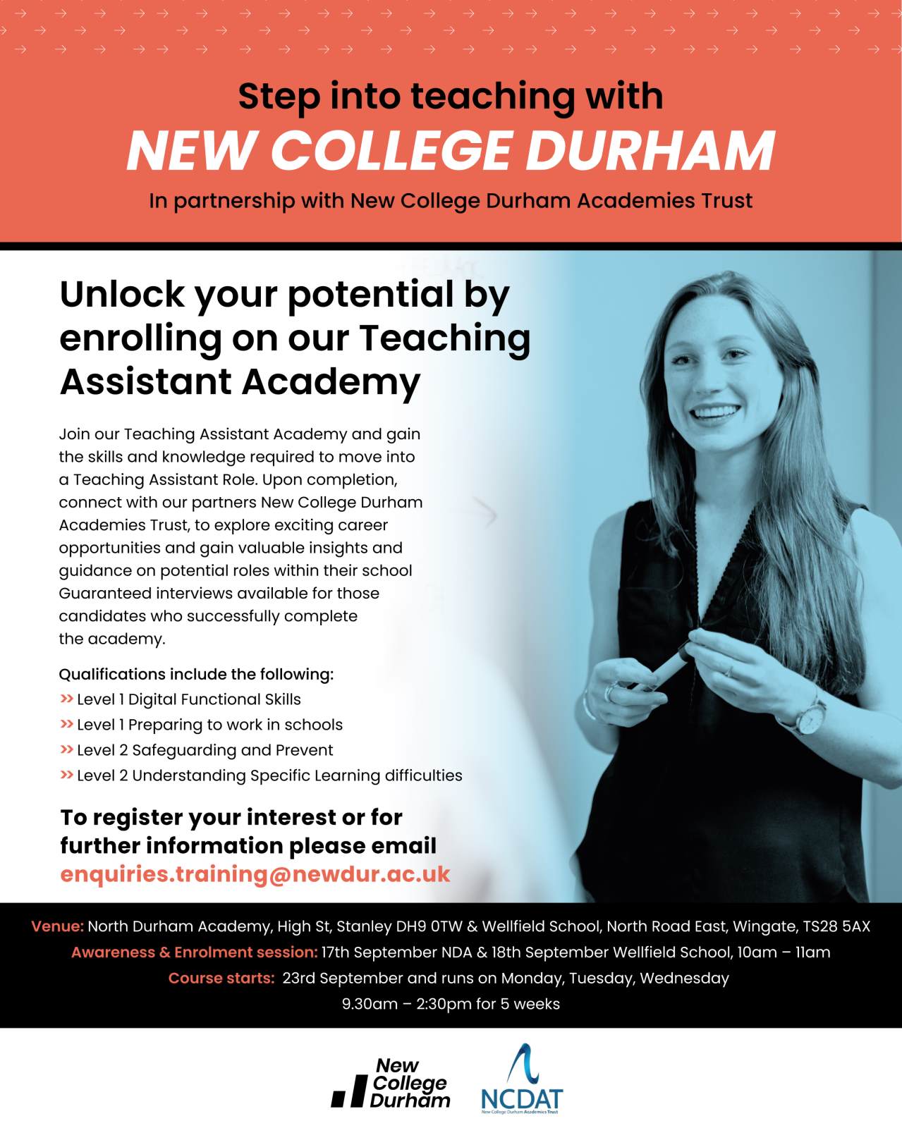 "We are delighted to be working with the New College Durham Academies Trust, designing a programme that truly meets the needs of aspiring teaching assistants. The hands-on work experience, which is also provided as part of this initiative, is invaluable, as it is often a key requirement for those looking to secure this type of role. Participants will benefit enormously from this experience, which will help open doors to meaningful employment opportunities."